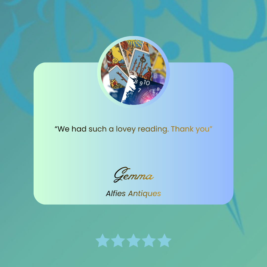 Step into a welcoming, transformative space. During your personalised session, I’ll guide you through the wisdom of tarot cards and numerology, helping you uncover clarity, answers and fresh perspectives on the path ahead.