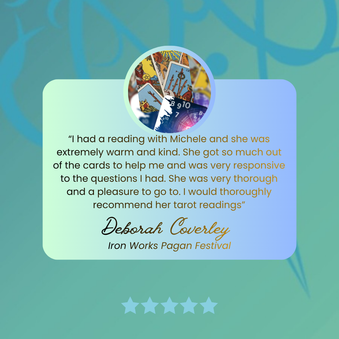 Walk away with more than just insight leave with tools, direction and renewed confidence. Apply your reading to make empowered choices, embrace change and open yourself to growth, transformation and new opportunities.